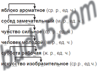 Составь сочетания слов сущ. + прил., изменяя окончания. Укажи род и число существительных и прилагательных.