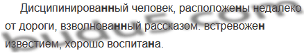 Дисципинирова(н, нн)ый человек, расположе(н, нн)ы недалеко от дороги, взволнова(н, нн)ый рассказом. встревоже(н, нн) известием, хорошо воспита(н, нн)а.