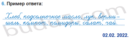 6. Здесь запиши продукты растениеводства, которые ты употребляешь в пищу в течение одного дня. Укажи дату исследования.