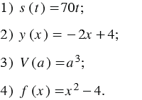 Прочитайте следующую запись, укажите аргумент функции и зависимую переменную: