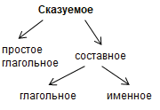 Рассмотрите схему и расскажите по ней о видах сказуемого в русском языке. Приведите свои примеры. Что объединяет простое и составное глагольные сказуемые? Что их различает?