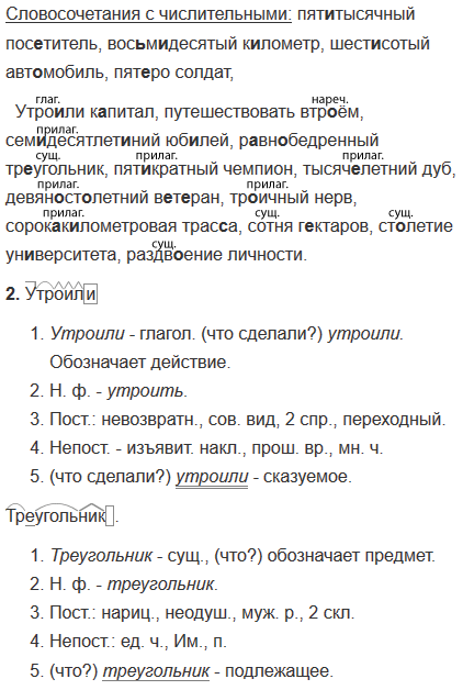 1. Сначала выпишите словосочетания с именами числительными, затем остальные, указывая, какой частью речи являются слова, в состав которых входят имена числительные.